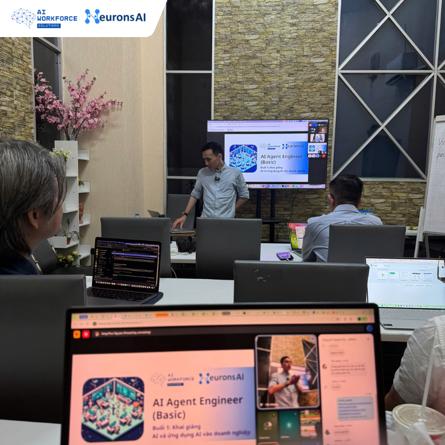 AIWS đã chính thức khai giảng chương trình đào tạo xây dựng AI Agent đầu tiên, đánh dấu cột mốc quan trọng trong hành trình phát triển đội ngũ nhân sự có khả năng huấn luyện và triển khai AI tự động hoá cho doanh nghiệp.